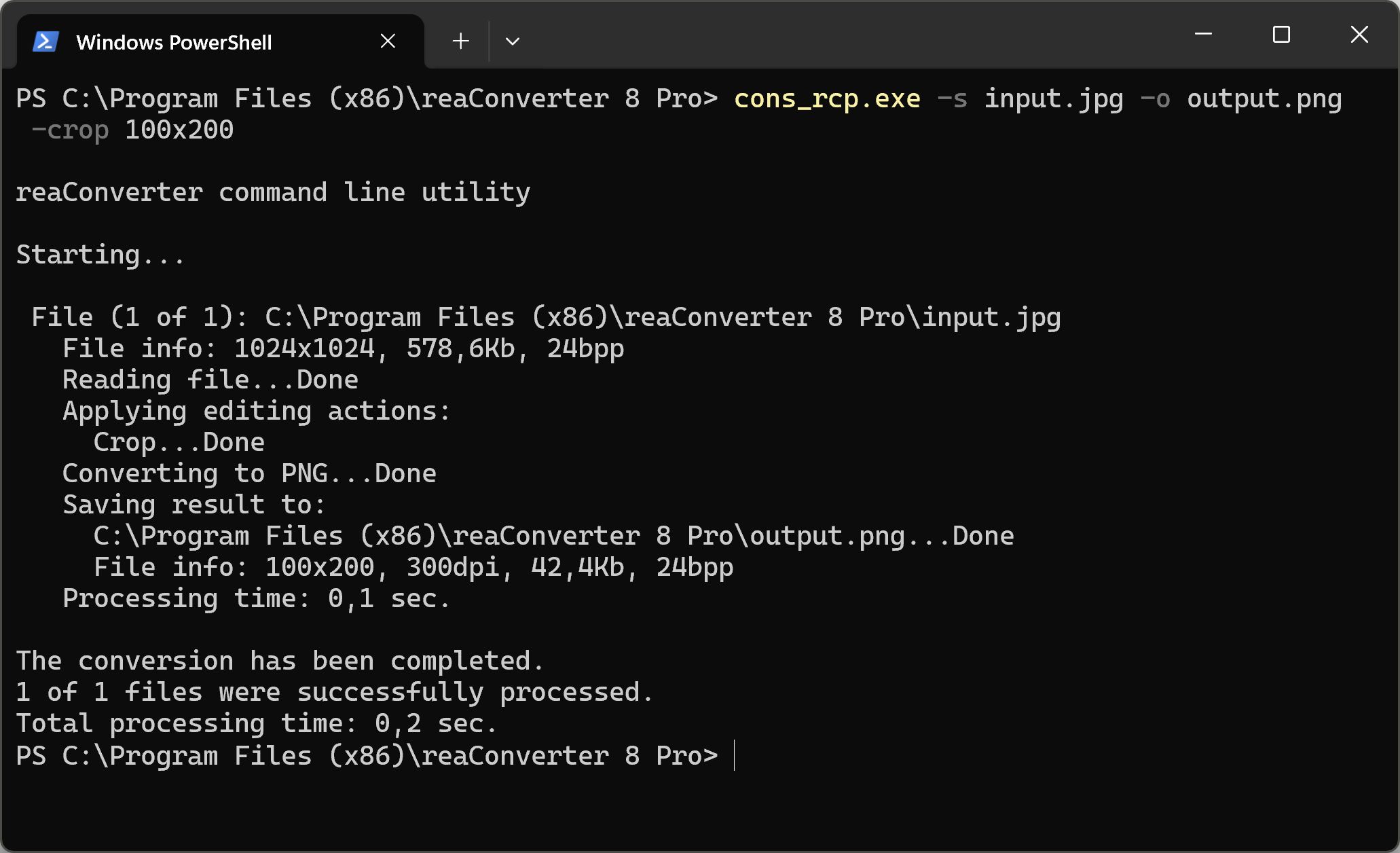 cons_rcp.exe -s "C:\Path_to\input_file.jpg" -o "C:\Path_to\output_file.jpg" -crop 100x200